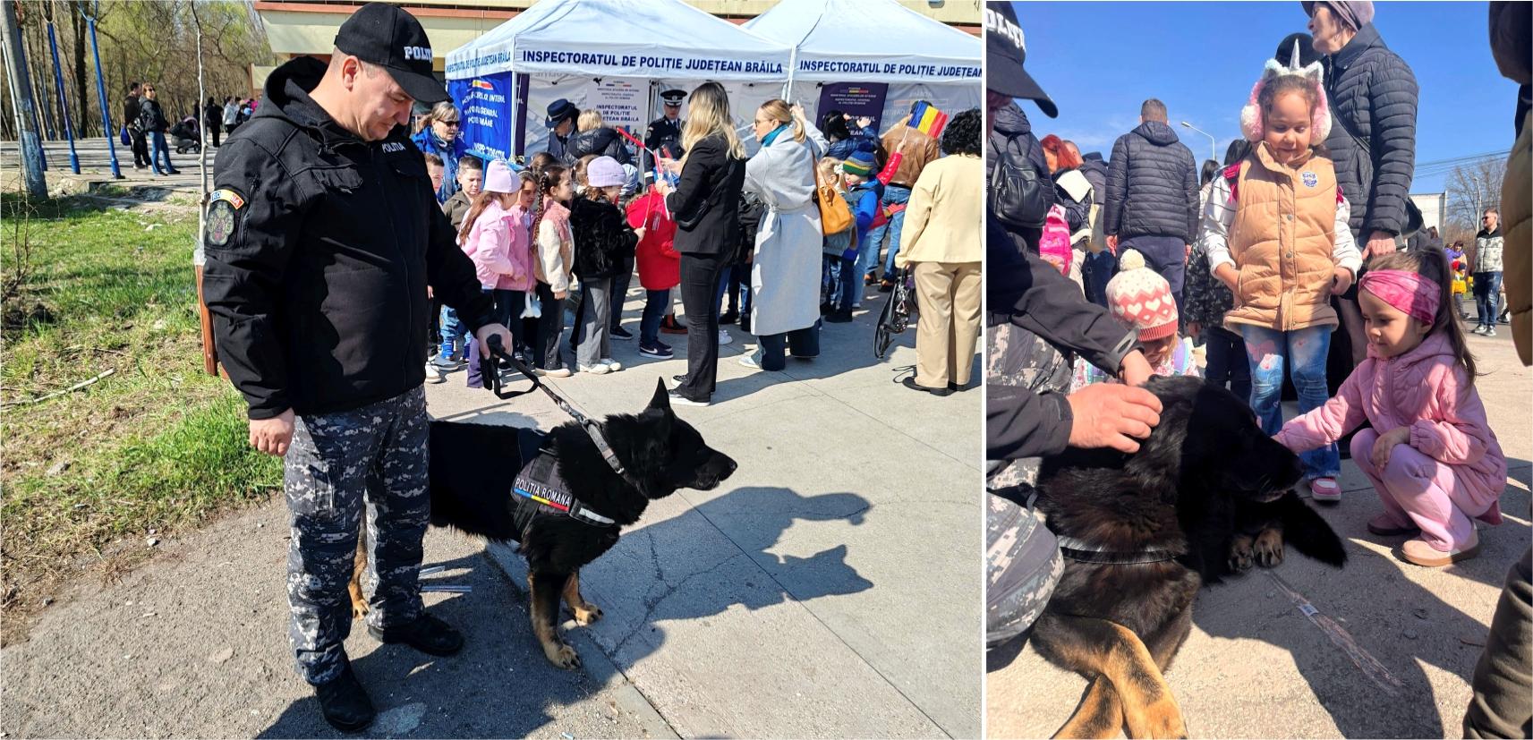 Un punct de atracție major l-au constituit câinii polițiști, care au captat imediat atenția publicului. „Gipsy”, un exemplar specializat în prinderea suspecților, a demonstrat o intervenție rapidă și eficientă, reușind să imobilizeze un „infractor” în cadrul unui exercițiu. De asemenea, „Mike”, câinele antrenat pentru detectarea stupefiantelor, a stârnit interesul copiilor, care au fost fascinați de abilitățile acestuia. Cei mici au profitat de ocazie pentru a face fotografii și pentru a interacționa cu patrupedele, momentul contribuind la detensionarea atmosferei create anterior.